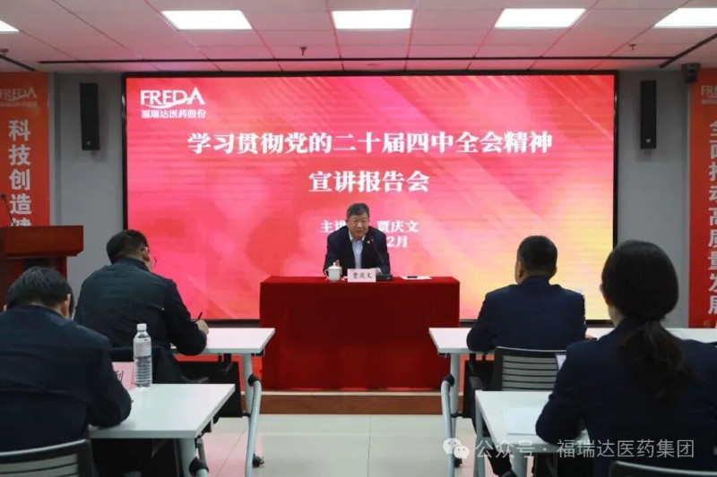 12月26日,魯商集團黨委常委、副總經理、工會主席賈慶文到福瑞達宣講黨的二十屆四中全會精神,福瑞達黨委副書記、董事周明主持宣講報告會。