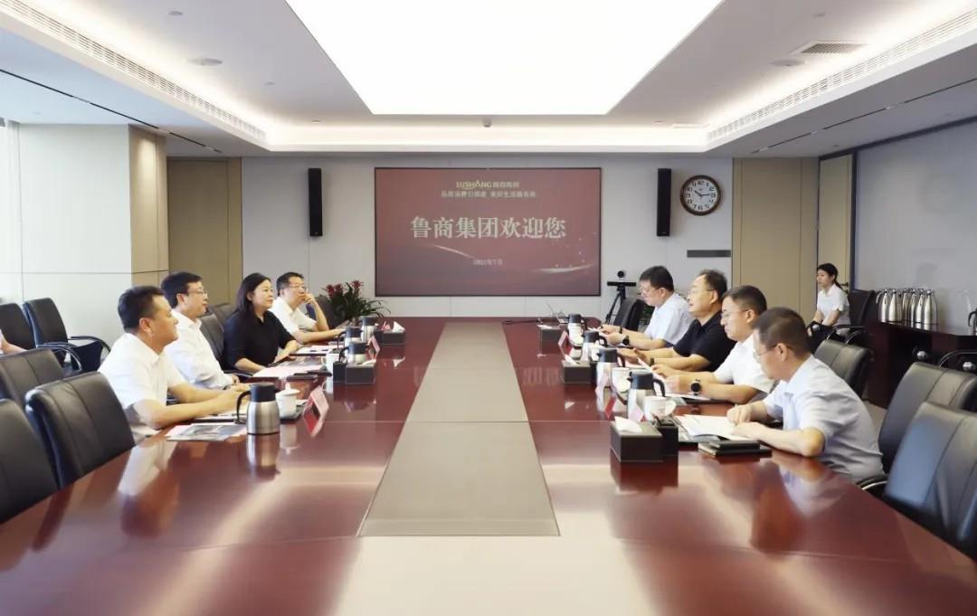 7月9日,濰坊市委書記劉運一行到訪魯商集團,集團黨委書記、董事長王緒超,黨委副書記、董事、總經理朱華建熱情接待并舉行座談。