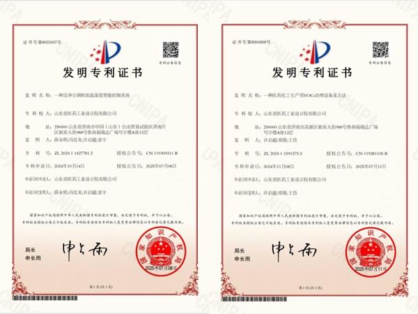 近日,省醫(yī)工院自主研發(fā)的“一種潔凈空調(diào)機組溫濕度智能控制系統(tǒng)”和“一種醫(yī)藥化工生產(chǎn)用VOCs治理設(shè)備及方法”獲國家發(fā)明專利授權(quán),標志著公司在醫(yī)藥工程設(shè)計、智能化控制及低碳環(huán)保領(lǐng)域取得重要突破。